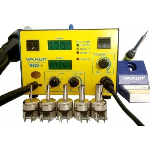 A estação de solda Yaxun 902+ é a escolha perfeita para profissionais da indústria, oferecendo um painel de controle individualizado e dois displays digitais para temperatura. Com 150C a 500C de temperatura do ar quente e 200C a 480C para o ferro de solda, esta estação completa é uma das mais vendidas do mercado.