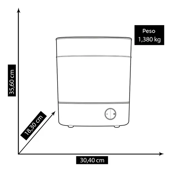 - Capacidade de esterilização: Até seis mamadeiras e acessórios simultaneamente