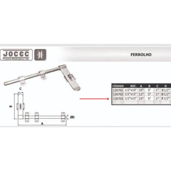 Ferrolho Jocec Trinco Fecho Aço Para Portão 1/2"x15"