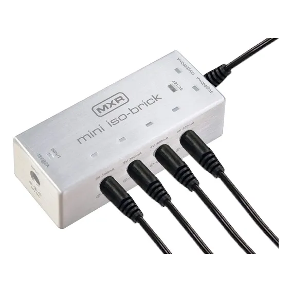 A MXR® Mini Iso-Brick? Power Supply M239 fornece energia DC silenciosa para pedais, com cinco saídas totalmente isoladas. É compacta e robusta, ideal para palco. Recursos: - Suporta quatro saídas de 9V a 300mA - Quinta saída configurável para 9V ou 18V a 800mA - Lida com aterramentos negativos e positivos - Compatível com pedais analógicos e digitais Características: - Fornece energia DC silenciosa - Cinco saídas totalmente isoladas - Compacta, ocupando menos espaço do que uma barra de chocolate - Construída para durabilidade - LEDs indicam conexões sólidas Especificações: - Quantidade de saídas: 5 - Saída padrão: 4 x 9V a 300mA - Saída configurável: 1 x 9V ou 18V a 800mA - Tecnologia: Isolamento de aterramento - Corpo: Leve e durável