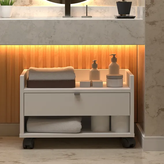 Gabinete Arm谩rio Multiuso Prisma Banheiro Organizador M贸vel Bege