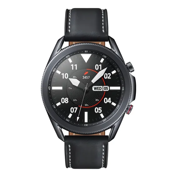 O Galaxy Watch3 oferece um design elegante com caixa de aço inoxidável 316L e pulseira de couro, combinando funcionalidades de monitoramento de saúde e tecnologia avançada. Possui display Super AMOLED de 1,4" e conectividade 4G LTE independente.