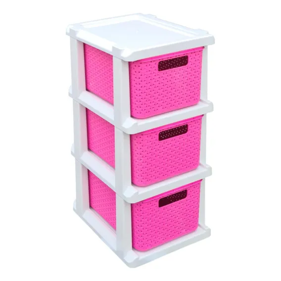 Gaveteiro Ratan Rosa Organizador 3 Gavetas
