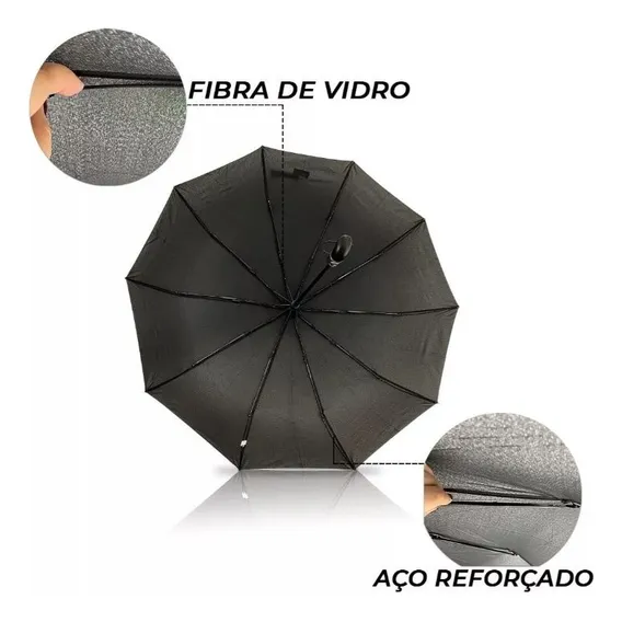Guarda Chuva Abre Automático Contra Vento Reforçado Preto