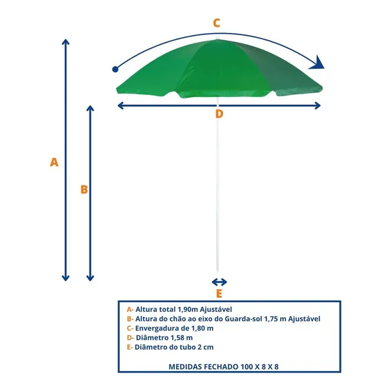 Guarda Sol Grande Praia Piscina Camping 1.8 M Fashion Mor