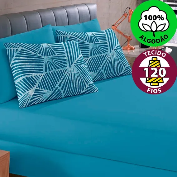 Jg Lençol Solteiro 2pç Estampado 100% Algodão Azul Buettner
