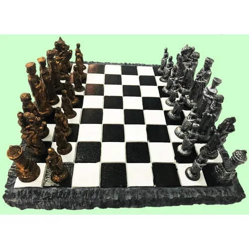 Jogo De Xadrez Medieval Tabuleiro E Peças Em Resina Completo