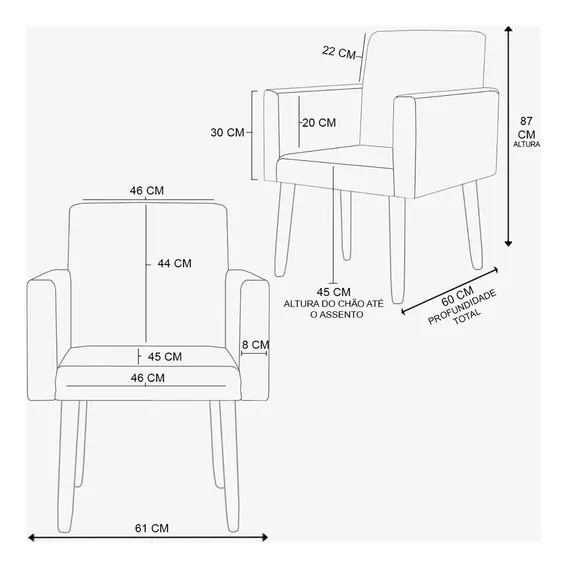 Apoltrona Nina Pé Palito é perfeita para ambientes residenciais e comerciais, com design moderno, conforto e durabilidade garantidos. Recursos: - Tecido em Suede - Espuma D-23 de alta densidade - Percentas elásticas Características: - Conforto - Durabilidade - Design moderno Especificações: - Altura: 87 cm - Largura: 61 cm - Profundidade: 60 cm - Peso: 9,5 kg (desmontada)