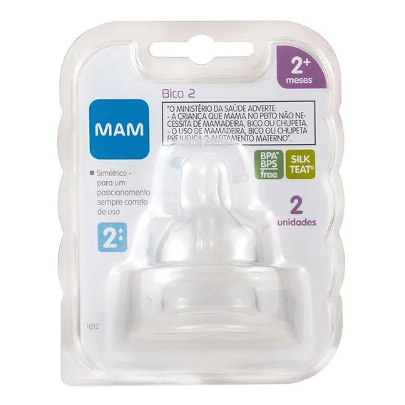 Kit 2 Bicos De Silicone Para Mamadeira 2m+ Fluxo Médio Mam