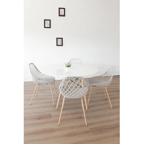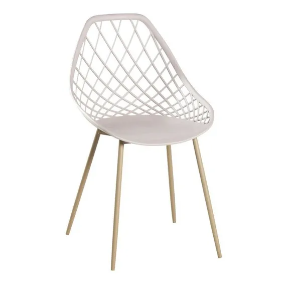 Conjunto de 2 cadeiras Cloe, feitas de polipropileno com base em aço tratada com adesivo de cor bege. Sem braços e pés, altura total 84 cm, assento fixo e escala de brilho fosco.