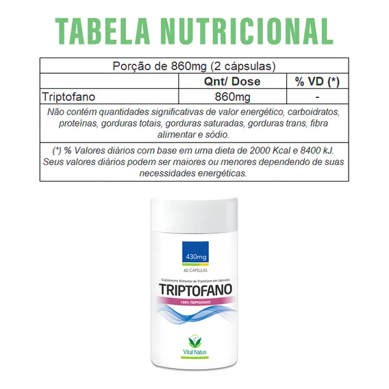Kit 2 Triptofano 430mg 2x60 Caps 120 Capsulas Vital Natus