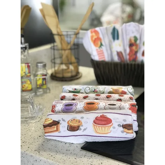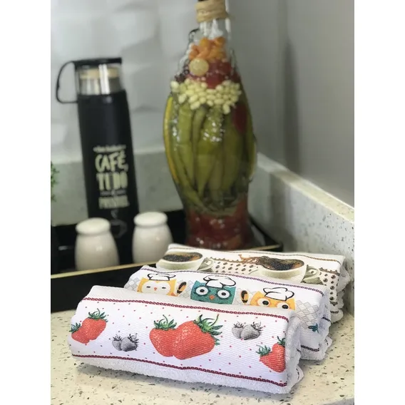 Kit 4 Toalhas Cozinha Pano De Copa Pano De Prato Atoalhado Cor Branco