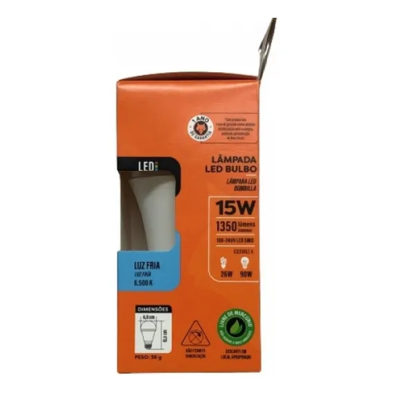 Kit 5 Lampada Led Bulbo A60 15w E27 6500k Branca Bivolt Fox Foto  mini 1 Kit 5 Lampada Led Bulbo A60 15w E27 6500k Branca Bivolt Fox Foto mini  2 Kit 5 Lampada Led Bulbo A60 15w E27 6500k Branca Bivolt Fox Foto mini  3 Kit 5 Lampada Led Bulbo A60 15w E27 6500k Branca Bivolt Fox Foto mini 4