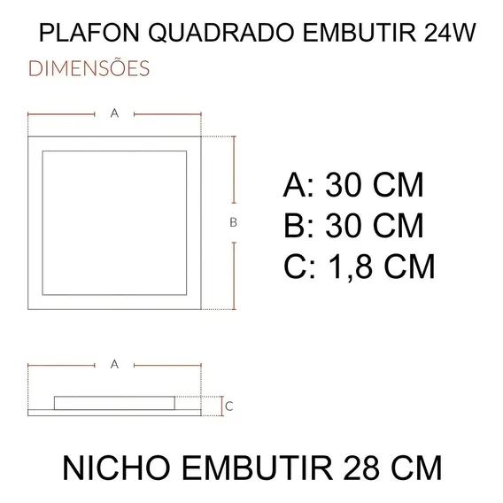 Kit 5 Painel Plafon Led 24w 25w Quadrado Embutir 6500k 30x30