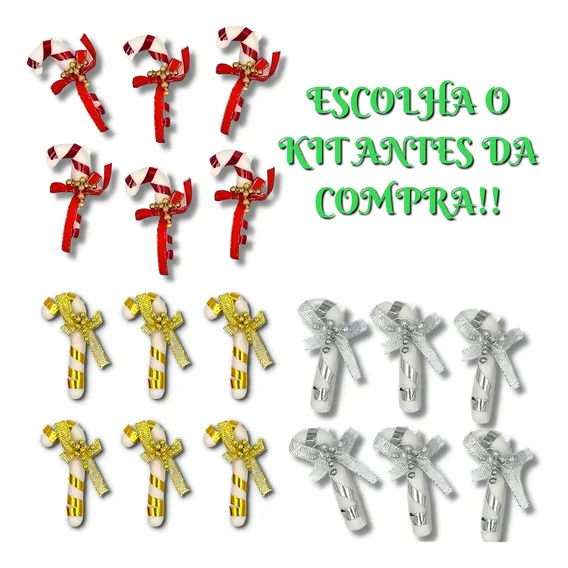 Kit 6 Bengalas Natalinas Pendentes Enfeite Árvore Natal