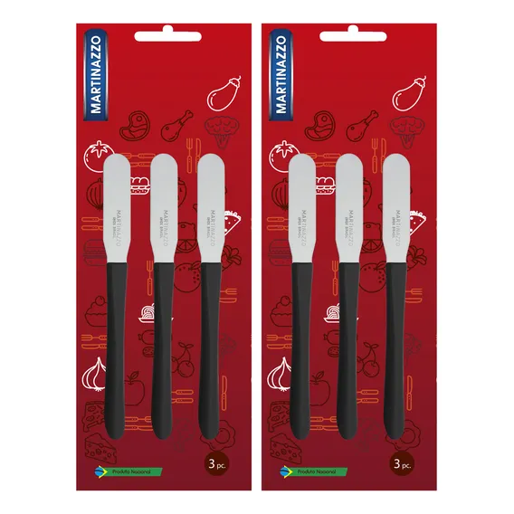 Kit 6 Espátulas Manteiga Patê Geleia 17,5cm Espátulas Inox