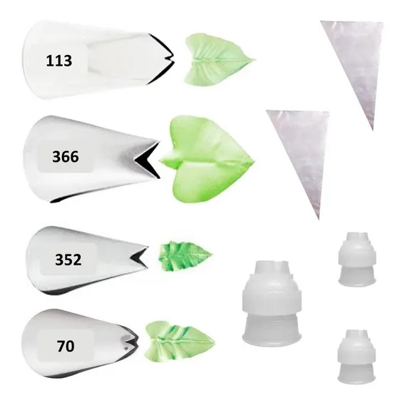 Chega em 5 dias Kit 9 Peças Bicos Folha Adaptadores Sacos Wilton Mago Chega em 5 dias!