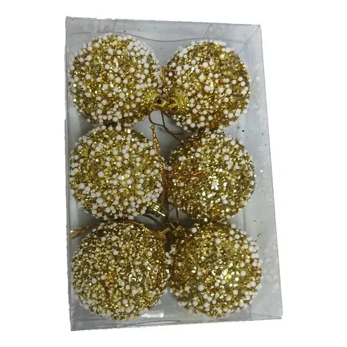 Kit Com 12 Enfeite Bola De Natal Dourada Nevada P/arvore Cor Dourado Bolas