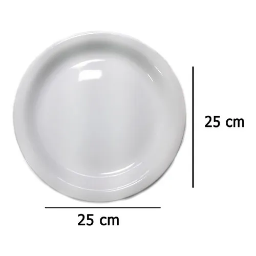 Kit Com 12 Unidades De Pratos Raso Em Ceramica Branco Liso Cor Branco