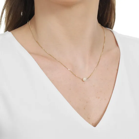 Kit Conjunto Brinco Colar Pérola Solitária Banhado Ouro 18k