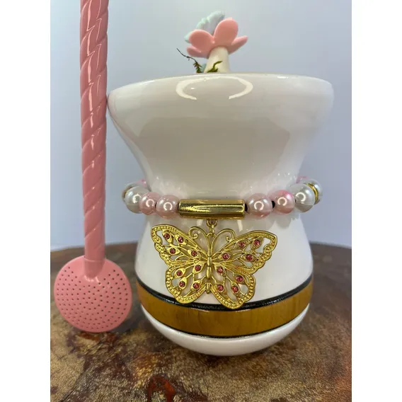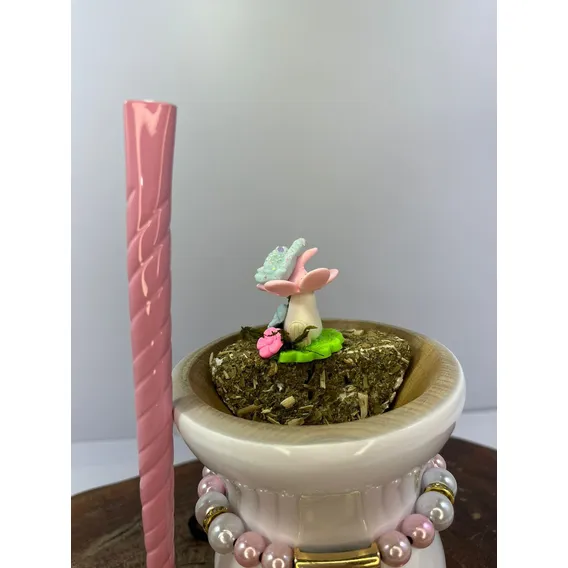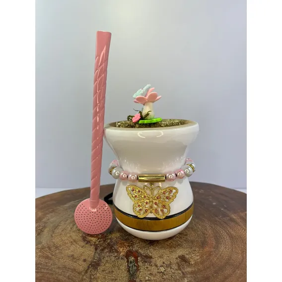 Kit De Cuia Chimarrão Madeira Imbuia Nobre com Bomba Inox e Colar de Perolas Luxo + Enfeite