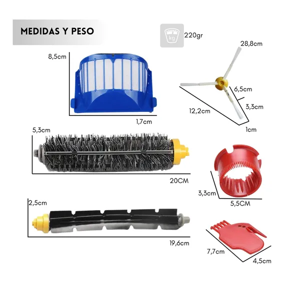 Kit de filtro, rolo e escova para Irobot Roomba 600