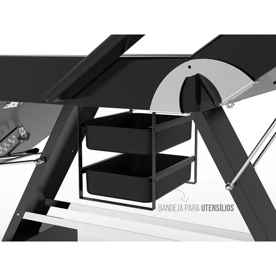 Kit Poltrona Maca Escada Carrinho Mocho Sem Encosto Estetica Cor Preto