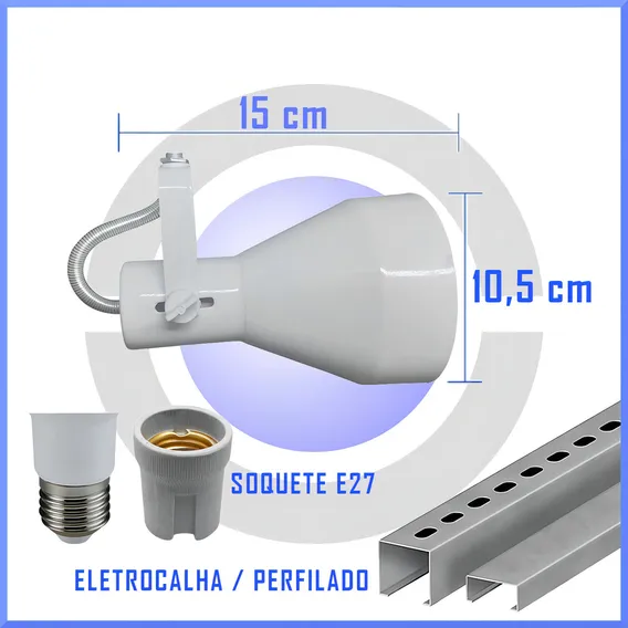 Kit Spot Trilho Par30 Lampada Led Eletrocalha Perfilado 6 Pt Cor Preto 110V/220V