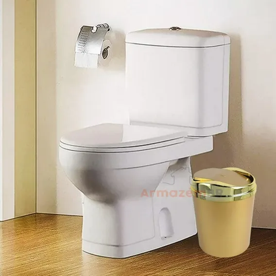Kit Suporte Papel Higiênico Lixeira 5l Banheiro - Dourado