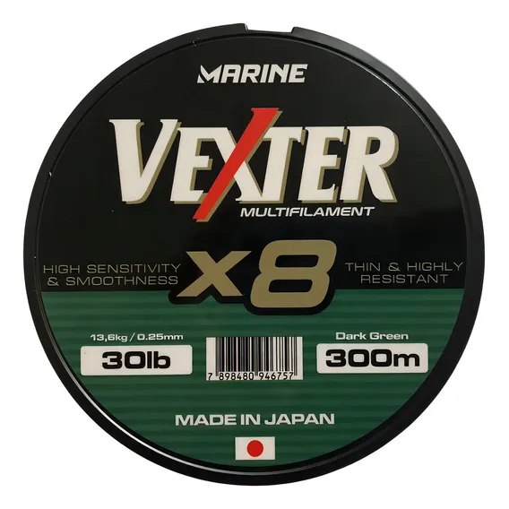 Linha Pesca Multifilamento Marine Vexter X8 0.25mm 30lb 300m 8 Fios Cor Verde