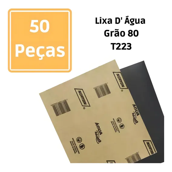 Lixa Dagua T223 Grão 80 Norton Pacote Com 50 Folhas