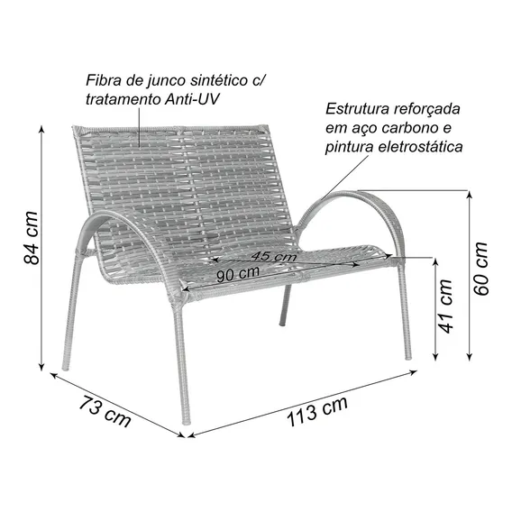 O nosso produto é feito com materiais premium, garantindo resistência e durabilidade. Inclui 1 namoradeira de junco. Recursos: - Namoradeira de junco inclusa Características: - Feito com matéria-prima de alta qualidade - Resistente e durável Especificações: - Altura: 84cm - Comprimento: 1,13cm - Profundidade: 73cm