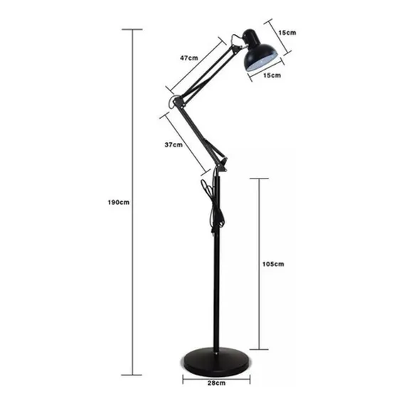 Luminária Chão Articulada Metal Lustre Coluna Abajur 1,90m