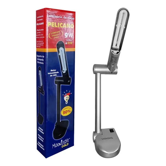 A Luminária de Mesa Pelicano 9w 220v é a companheira perfeita para qualquer espaço de trabalho ou estudo. Com seu design moderno e elegante, ela se integra facilmente a qualquer decoração, trazendo um toque sofisticado ao ambiente. Fabricada com materiais de alta qualidade, sua estrutura robusta e tela de plástico resistente garantem não apenas durabilidade, mas também segurança durante o uso. A tecnologia de iluminação fluorescente da Luminária Pelicano oferece uma luz suave e uniforme, ajudando a prevenir o cansaço visual. Essa luminária é compacta, medindo apenas 32 cm de altura e 12 cm de largura, tornando-a fácil de transportar e armazenar. Seu mecanismo articulado permite que você ajuste o ângulo de iluminação conforme necessário, proporcionando a melhor posição de luz para suas atividades diarias. Além disso, sua eficiência energética significa que você pode economizar muito em custos de energia ao utilizá-la regularmente. A luminária vem pronta para uso, com uma lâmpada compacta PL Branco Frio já instalada, facilitando assim a sua primeira configuração.