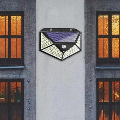 Luminária Parede Solar 100 Led Com Sensor Prova Dágua Jardim