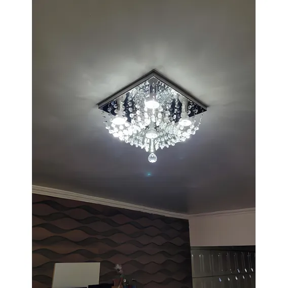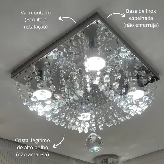 Lustre Cristal Legítimo 30x30cm Vai Montado Cor Branco