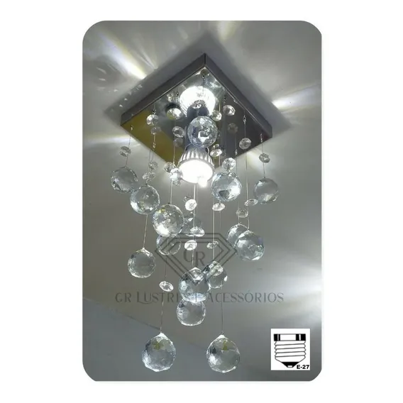 Lustre Gr 16 Chuva AcrÃlico Estrutura Prateado Bivolt 127 220 Base Do Lustre Quadrada