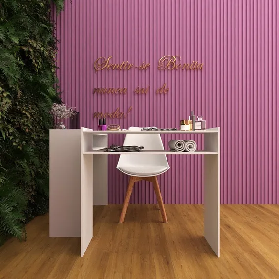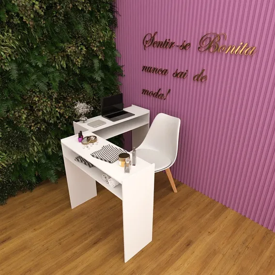 Chega em 5 dias Mesa Manicure Em L + Expositor Esmalte + 3 Nichos Cor Branco Entrega até Sábado, 25 de outubro de 2025 para TODO o Brasil