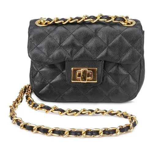 Mini Bolsa Feminina MatelassĂȘ Couro LegĂtimo Transversal Acambamento Dos Ferragens Ouro Cor Preto Desenho Do Tecido Matelass