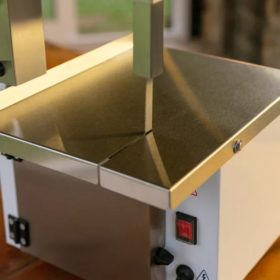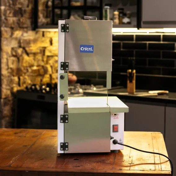 Mini Serra Fita Elétrica De Bancada Corta Carne Com Osso Doméstica Cricri - Máquina de Serrar Cortar Pequena Portatil de Mesa Profissional Porta Inox Para Peixe Frango Bovinos Congelada Açougue
