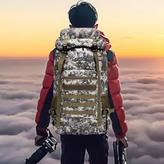 Mochila Cargueira Camping Trekking Bolsa Acampamento 70 L Cor Cinza-branco