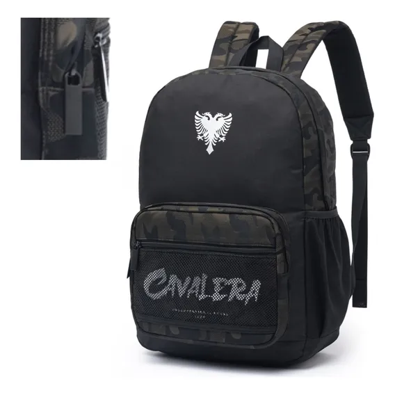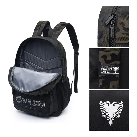 Mochila Cavalera Preta Com Camuflado -cv7227 Cor Preto Com Detalhe Camuflado Desenho Do Tecido Liso