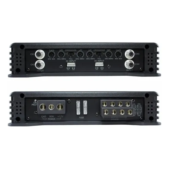O Amplificador On Audio G400.4 Gold Line oferece alta qualidade sonora com n铆veis muito baixos de distor莽茫o, utilizando componentes de 煤ltima gera莽茫o. 脡 ideal para carros modernos, proporcionando som excepcionalmente aberto e r谩pido. Recursos: - Resposta de 谩udio aberta e r谩pida - Modo bridge para aumentar a pot锚ncia - Suporte a diferentes voltagens de entrada Caracter铆sticas: - Alta qualidade sonora - N铆veis muito baixos de distor莽茫o - Componentes de 煤ltima gera莽茫o Especifica莽玫es: - Modelo: G400.4 - Marca: On Audio - Pot锚ncia RMS @4 Ohm: 4x45W - Pot锚ncia RMS @2 Ohm: 4x60W - Pot锚ncia RMS @4 Ohm (bridge): 2x120W - Classe AB: 4/3/2 canais - Resposta de frequ锚ncia: 10 Hz a 47 kHz - Sensibilidade de entrada: RCA (0,2 V a 6,3 V), entradas altas (0,6 V a 10 V) - Imped芒ncia de entrada: 14 Kohms - THD 'A weighted': < 0,029 % - Fator damping: 126 - HPF: 12 dB/oit, 30 Hz a 600 Hz - LPF: 12 dB/oit, 30 Hz a 300 Hz - Fus铆veis: 2 x 25 Amperes