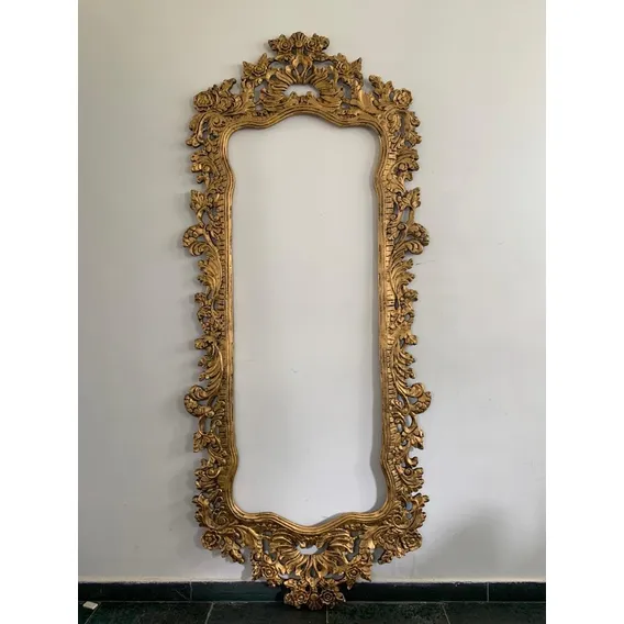Moldura Espelheira Salão Maquiagem Antiga Provençal Arabesco Cor Dourado Envelhecido