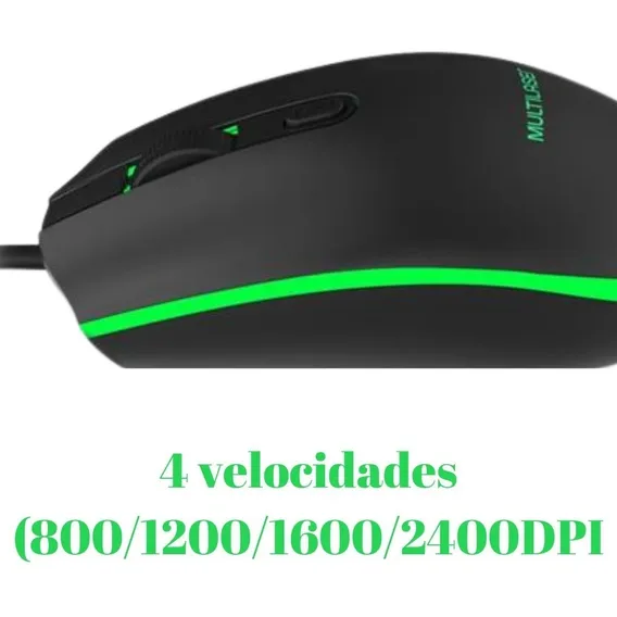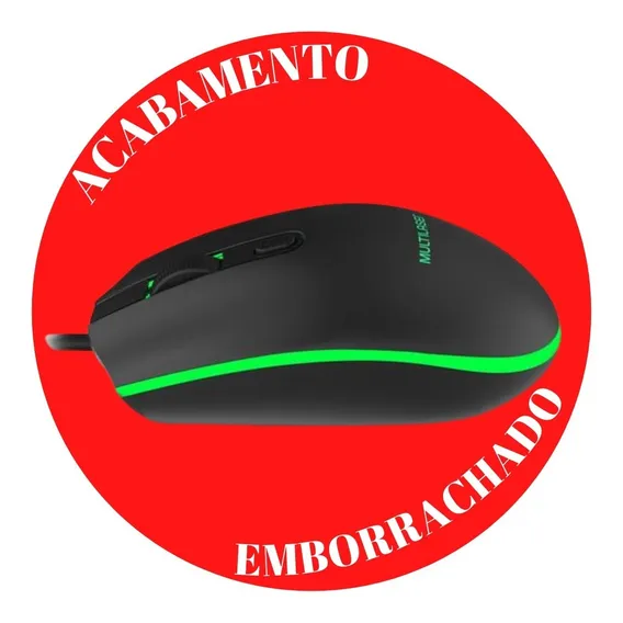 Mouse Gamer Multilaser Emborrachado 2400 Dpi Led 7 Cores Rgb