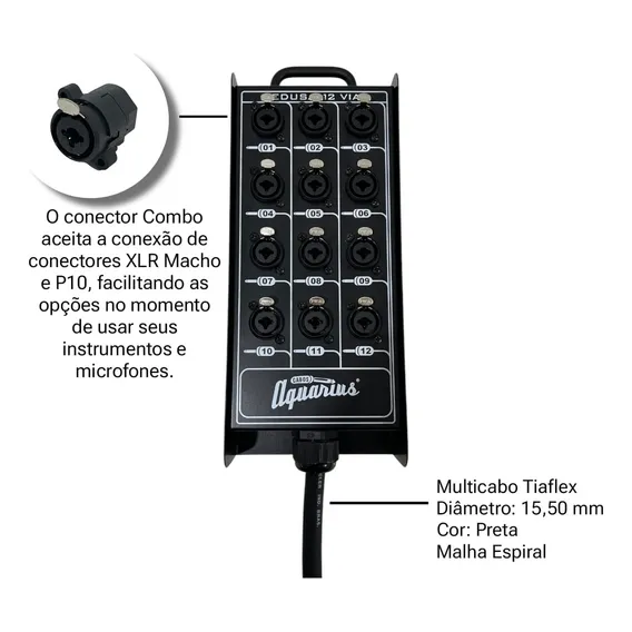 Multicabo Medusa 12 Vias Combo Cabos Aquarius - 35 Metros