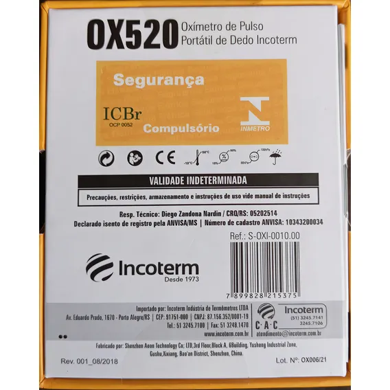 Produto Original Oxímetro de pulso para dedo Incoterm OX520 preto Produto Original
