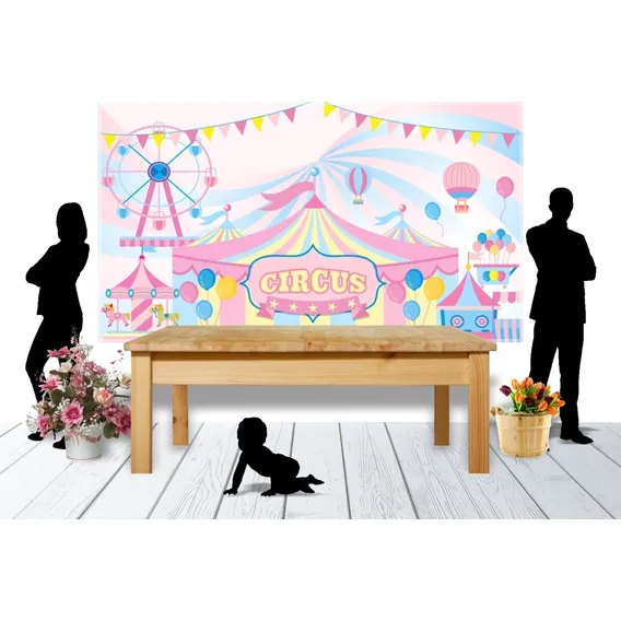 Compre SEM Login Painel Festa Infantil Menina 3x1,7m Circo Rosa 002 Banner Cor Água Compre SEM Login!