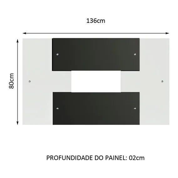 O Painel 2185 da Madesa é versátil e moderno, suportando TVs de até 58 polegadas e facilitando a organização de fios. Com acabamento em branco e preto e proteção ecológica. Recursos: - Facilita a organização dos aparelhos - Tons branco e preto - Acabamento em Poliéster Protetor com 7 camadas Características: - Suporta TVs de até 58 polegadas - Design moderno com padrões verticais e horizontais - Abertura central para passagem de fios Especificações: - Altura: 80 cm - Largura: 136 cm - Profundidade: 2 cm - Código do produto: 2185731