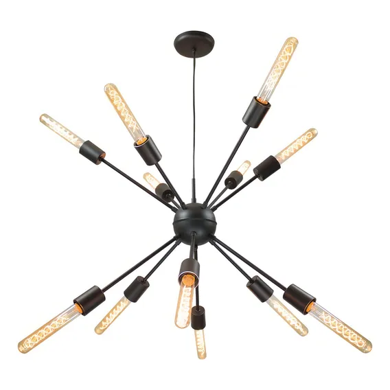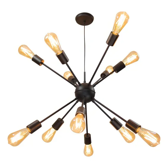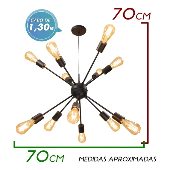 Pendente Sputnik Atom Preto + 12 Lampada Carbono St598